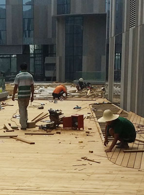 木質座椅打造一片休憩的空間,布藝的抱枕,溫馨的燈光,給人內心充盈的舒適和溫暖感覺!置身其中,放松心情,整個人都沉靜下來!自家若有個大庭院,木平臺的規劃讓花園更具人文氣息,木地板、木柵欄、木樓梯、木亭廊……起到藝術的裝飾作用,同時布置一些照明燈具,夜晚的庭院更顯沉穩和品味。 防腐木產品誰來施工? 庭院剛施工完成,柳岸木的葡萄架開裂了?  開車去現場看了一下,做好的葡萄架木質很松、裂口很大,可以確定開裂的原因:用的不是柳桉而是松木的一種,但是具體是哪一類松木也分辨不出來,裂縫產生主要原因是木頭沒有烘干,含的水分很多,經過風吹日曬,木頭中的水分蒸發發生收縮變形而產生裂縫,把木頭換掉基本是不可能了,唯一的解決辦法就是等裂縫穩定以后用膩子填滿重新做油漆。  事情解決了,正好業主也在,就問他簡單溝通了下,了解了一下情況,幫他做花園的是找上門來的一個施工隊,柳桉防腐木地板3公分厚280元/平方,葡萄架報價500元/平方,就業主算了一筆賬,正宗柳桉木現在市場價按5000元一立方計算,不算損耗,一立方可以做33個平方地板,每平方是150元,木工安裝費市場行情是60元/平方,油漆30元/平方,加上地板下的木楞50元/平方加起來就是290元/平方,再加上損耗和正常的公司利潤,280元/平方的柳桉防腐木地板怎么能做的出來呢